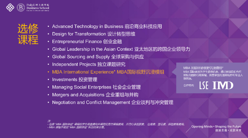 香港理工大学工商管理硕士课程由具有丰富知识和经验的知名教授和行业专家授课,为学生提供独特的学习体验。