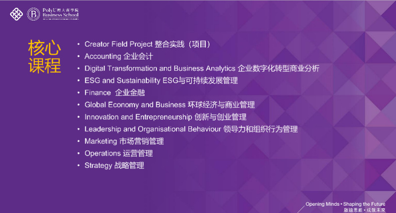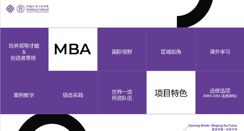 香港理工大学工商管理硕士(MBA)致力于激发专业人士和管理人员的领导潜能,并培养其创新思维,为商业领域和社会发展注入新动力。