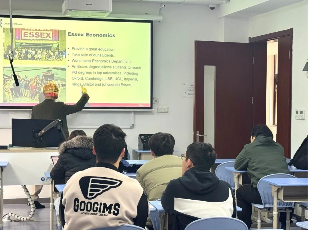 会谈结束后,卡洛斯教授和吴老师前往教学楼与项目内的部分同学见面。卡洛斯院长分享了埃塞克斯大学的优势资源以及能够为未来学生提供的丰富学术支持和各类平台。现场同学认真聆听,并与两位老师积极互动。大家都期待着未来能在埃塞克斯大学的校园里再次与卡洛斯教授相遇。