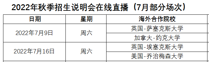 2022年7月9日、7月16日将举行线上入学测试。招生说明会同步进行,具体安排如下: