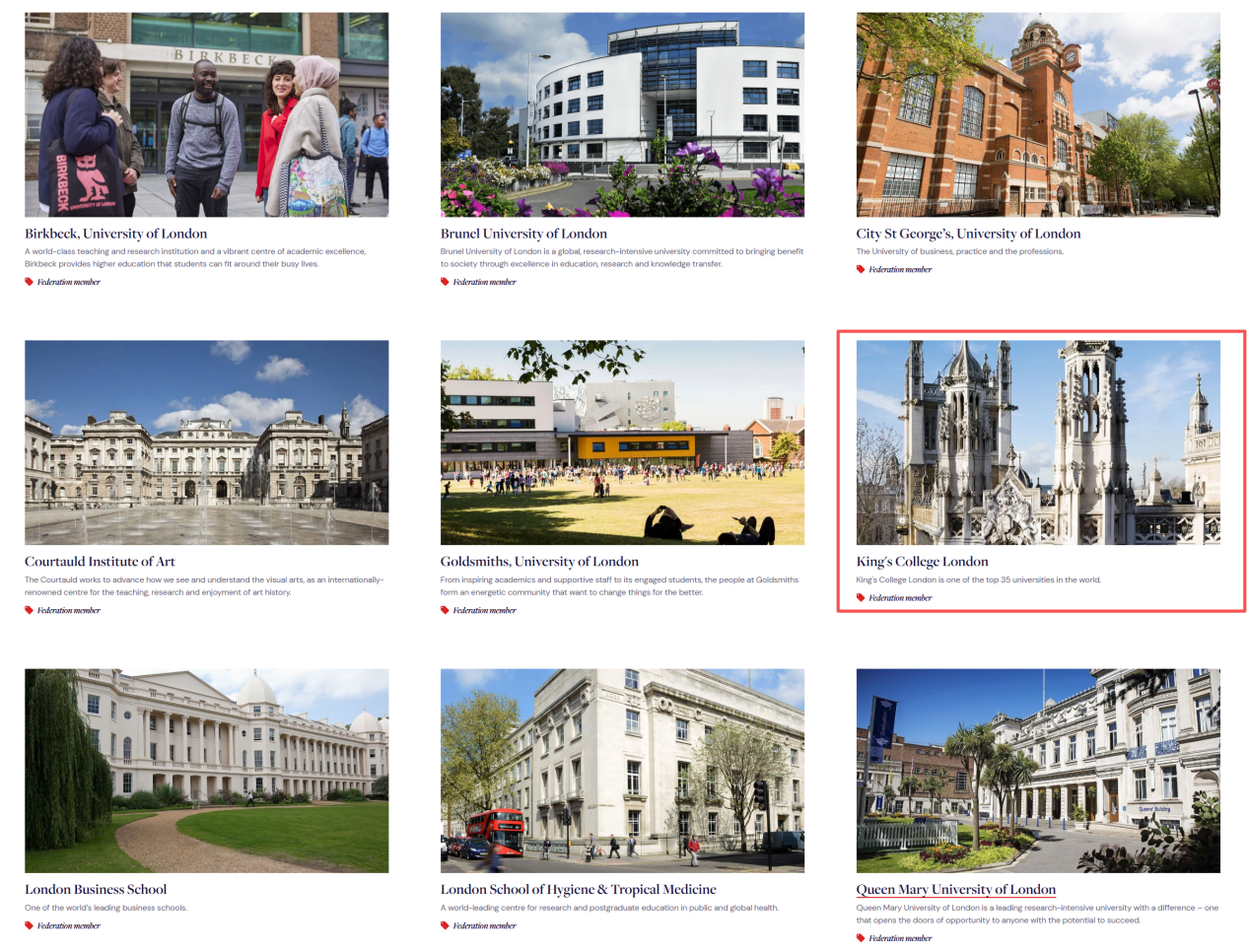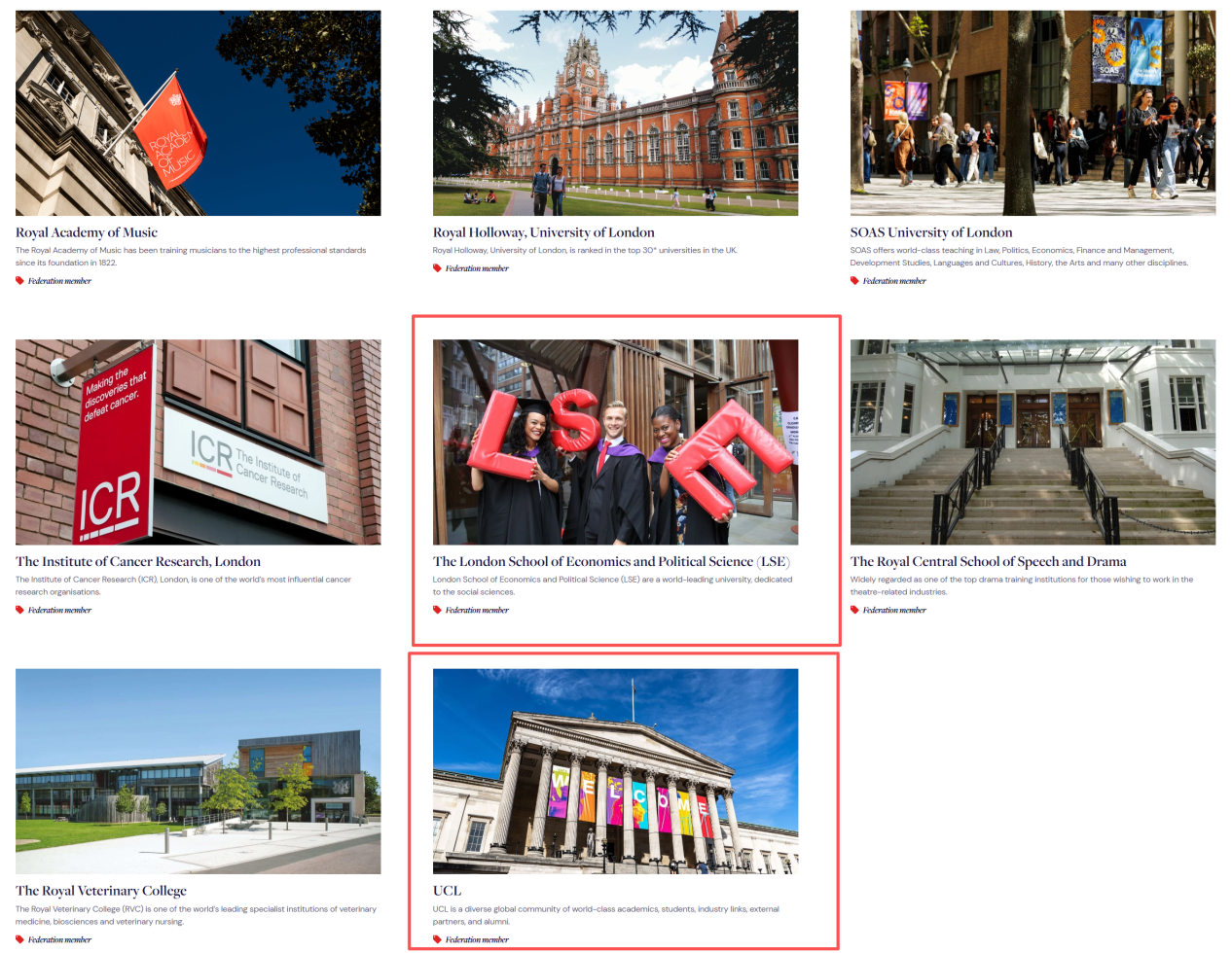 伦敦大学联盟(University of London)作为英国规模最大、多样性最强的高等教育联盟之一,历史底蕴与学术实力兼具。其溯源可至1836年,最初由伦敦大学学院(UCL)与伦敦国王学院(KCL)联合发起,承担两校共用的学位授予职能;1900年正式升级为联邦制联盟,各成员院校保持独立运营自主权,同时共享伦敦大学统一的学位授予体系与优质资源。伦敦大学联盟现有学生超25万名,涵盖190个国家和地区,各成员院校在所属学科领域均具备顶尖学术实力,共同推动全球科研与教学发展,成为全球高等教育领域极具影响力的核心力量。