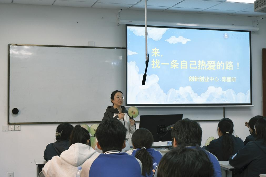 在创新创业主题课堂中,邓丽昕老师以“我们是谁、为何创新创业、可以共同行动的方向”为主线,通过一系列真实而生动的案例,向同学们展示了创意转化为实际价值的全过程。她重点介绍了团队依托人工智能技术研发的辅听设备、山地农业精准管理系统等多项获奖项目,生动呈现科技与创新融合所释放的实践潜力。