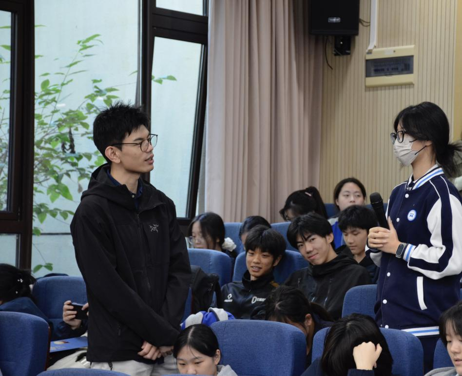 最后,海滨中学校友、学院项目在读生高彧同学结合自身学习经历,分享在上财国教的校园生活与学习体会。她以切身经验向参营学生呈现了真实的大学学习场景,也为大家未来的升学规划提供了具有参考价值的建议。
