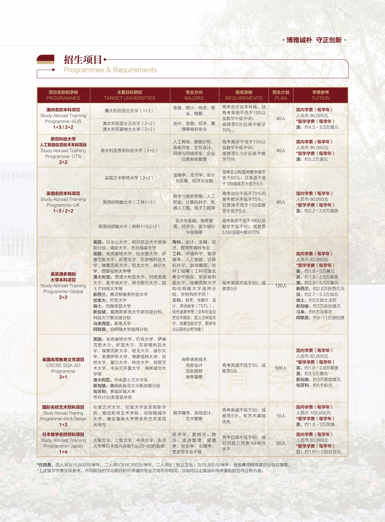 2026年秋季招生项目共有7个项目,涵盖1+3、2+2、3+1等不同学习模式,不同项目报名要求和海外院校略有不同,具体可参考下方图片。